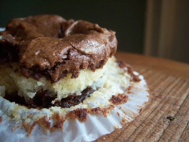 If you want an exposed coconut center (see my pictures of cupcakes above), then spread filling to the edges of the batter. If you want the coconut centers hidden in the middle of the cupcakes (see the pictures of my heart brownies), do not spread coconut to the edge, leaving a little brownie batter exposed around the edges.Place about 2 to 3 tablespoons of brownie dough on top of coconut mixture and spread over coconut to cover (it's ok if coconut peeks through -- it'll just get a bit toasted).